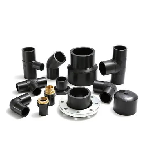 Yüksek yoğunluklu polietilen malzemeden üretilen, içme suyu ve gaz hatları için dayanıklı ve sızdırmaz bağlantı parçaları.